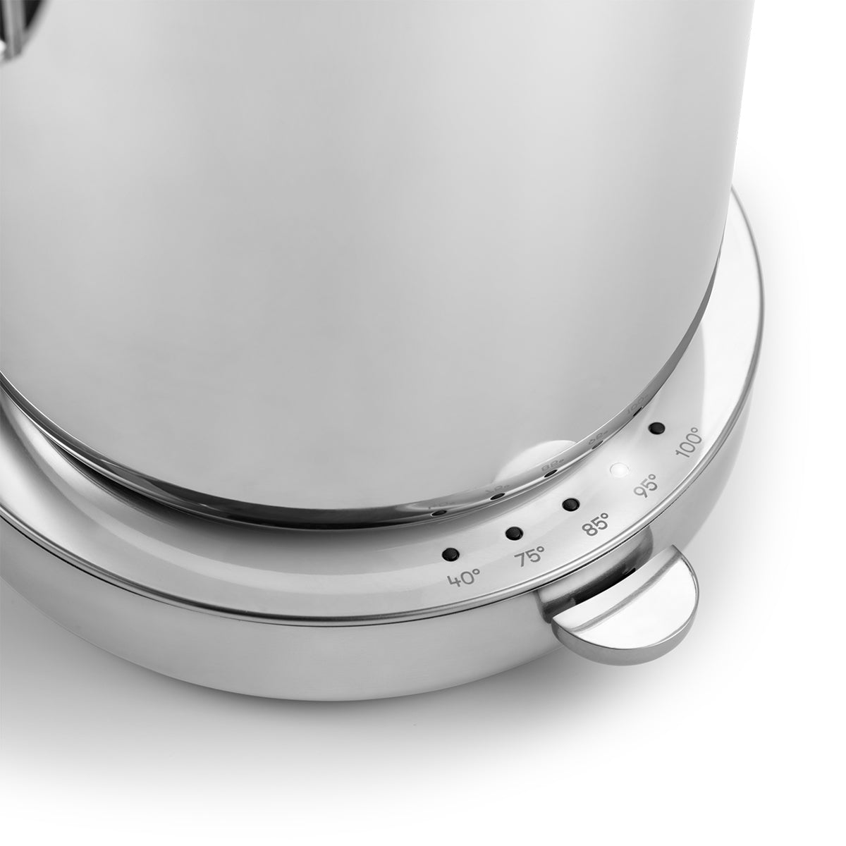 • 5 temperature presets — 40°, 75°, 85°, 95° and 100°C, precisely matched to different tea varieties, pour-over coffee, and full boil for everyday use.