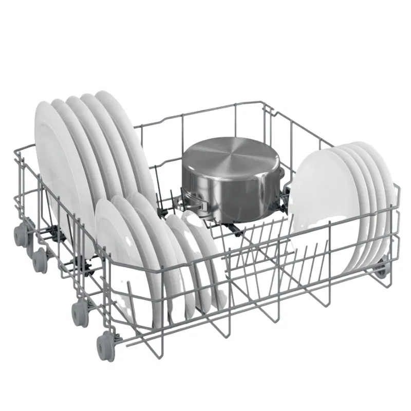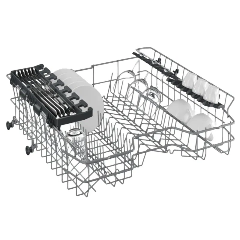 - Slide-out cutlery basket & foldable racks: Flexible loading for dishes of all shapes and sizes.