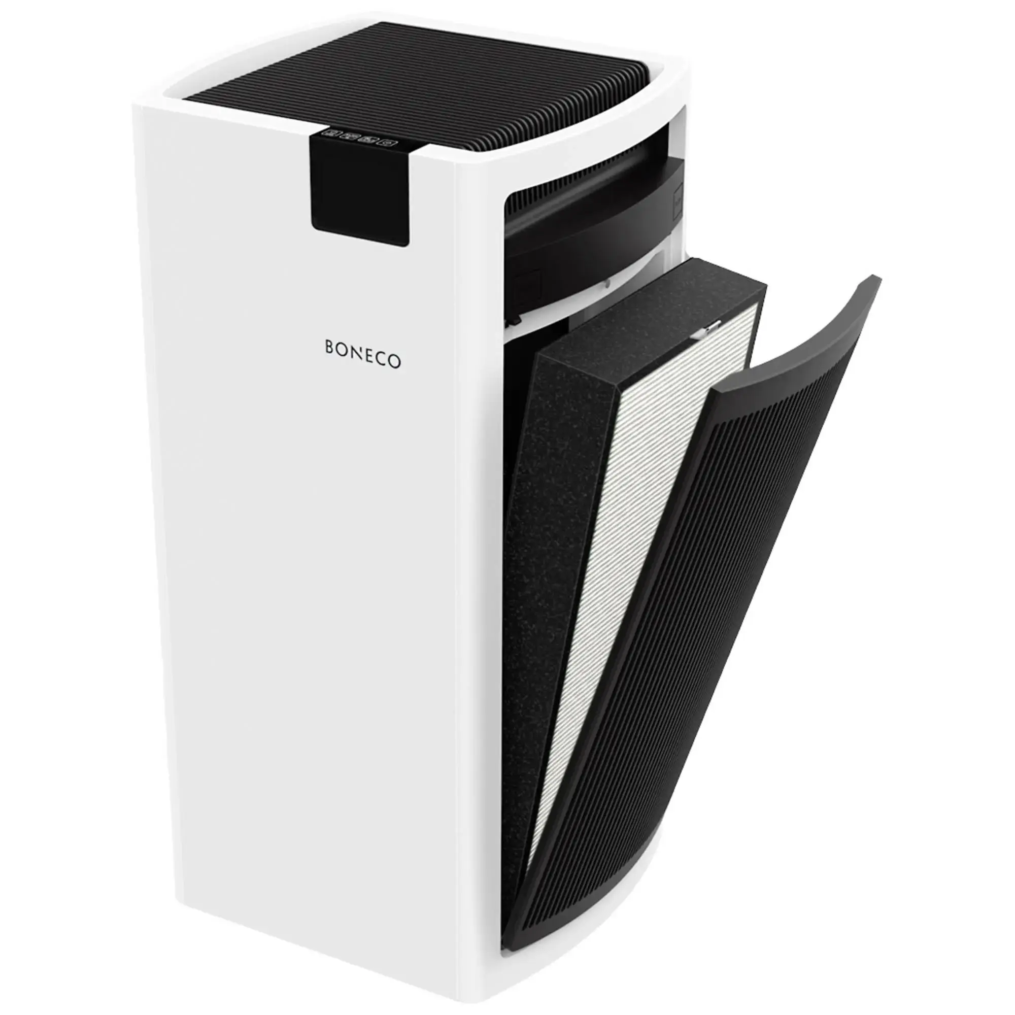 The Boneco P710 is one of the most powerful air purifiers on the market, designed for highly polluted environments and large rooms up to 72 m². With a dual filtration system (HEPA + activated carbon), it effectively removes fine dust, allergens, gases, odors, smoke, bacteria, and pet dander. Delivering an airflow of up to 800 m³/h, the unit ensures fast and efficient air cleaning. A built-in laser particle sensor continuously monitors air quality and adjusts the purification level automatically via Auto Mode. The device features a child lock, timer function, filter replacement reminder, and easy mobility with handles and transport wheels. Despite its power, it runs quietly from 37 to 66 dB and consumes only 67W.