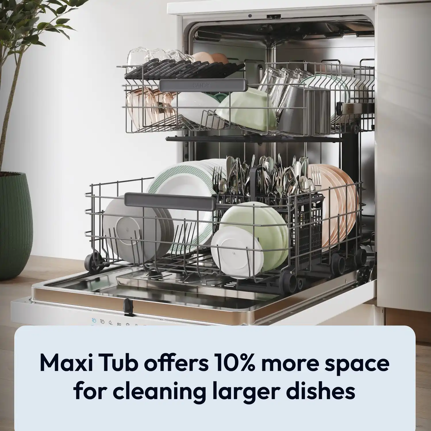 • Natural Condenser Drying: Your dishes dry naturally, reducing energy use and keeping plastics pristine.
