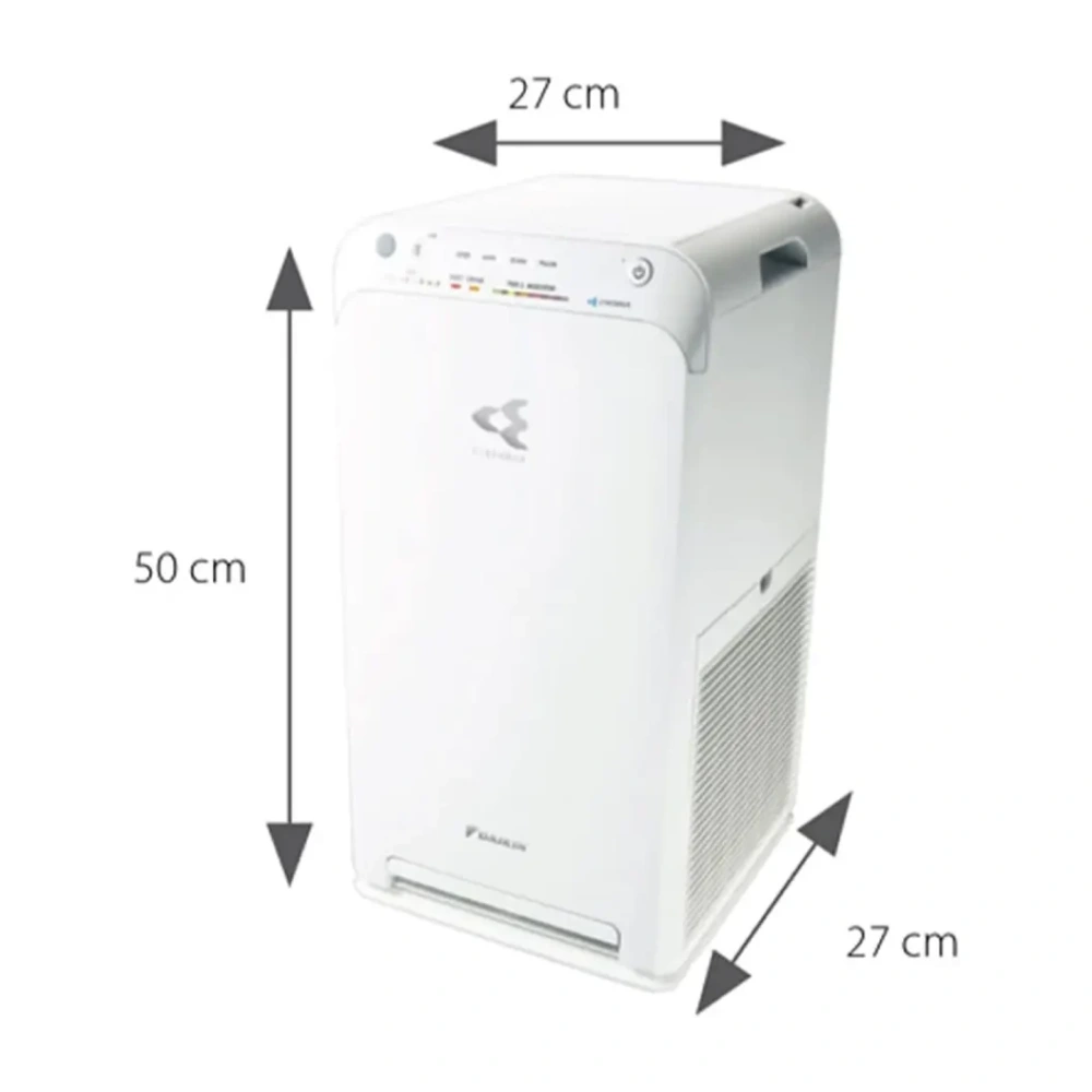 The Daikin MC55W Air Purifier features advanced Catch & Clean dual-stage purification and an electrostatic HEPA filter that removes 99.97% of fine particles as small as 0.3 μm. Designed for spaces up to 82 m², it effectively captures allergens, dust, pollen, bacteria, and viruses. The compact design, quiet operation starting at 19 dB, and a 10-year filter lifespan ensure low maintenance and seamless integration into any room. Daikin’s Streamer Technology purifies the air post-filtration, enhancing overall indoor air quality. Ideal for allergy sufferers and approved by Allergy UK, this purifier ensures fresh, clean air with minimal effort.