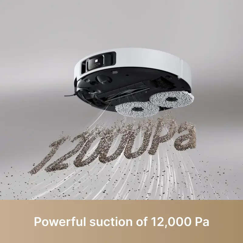 Advanced robot vacuum with liftable mop, 12,000Pa suction, and 70°C hot mop washing. Ideal for deep cleaning and smart home integration.
