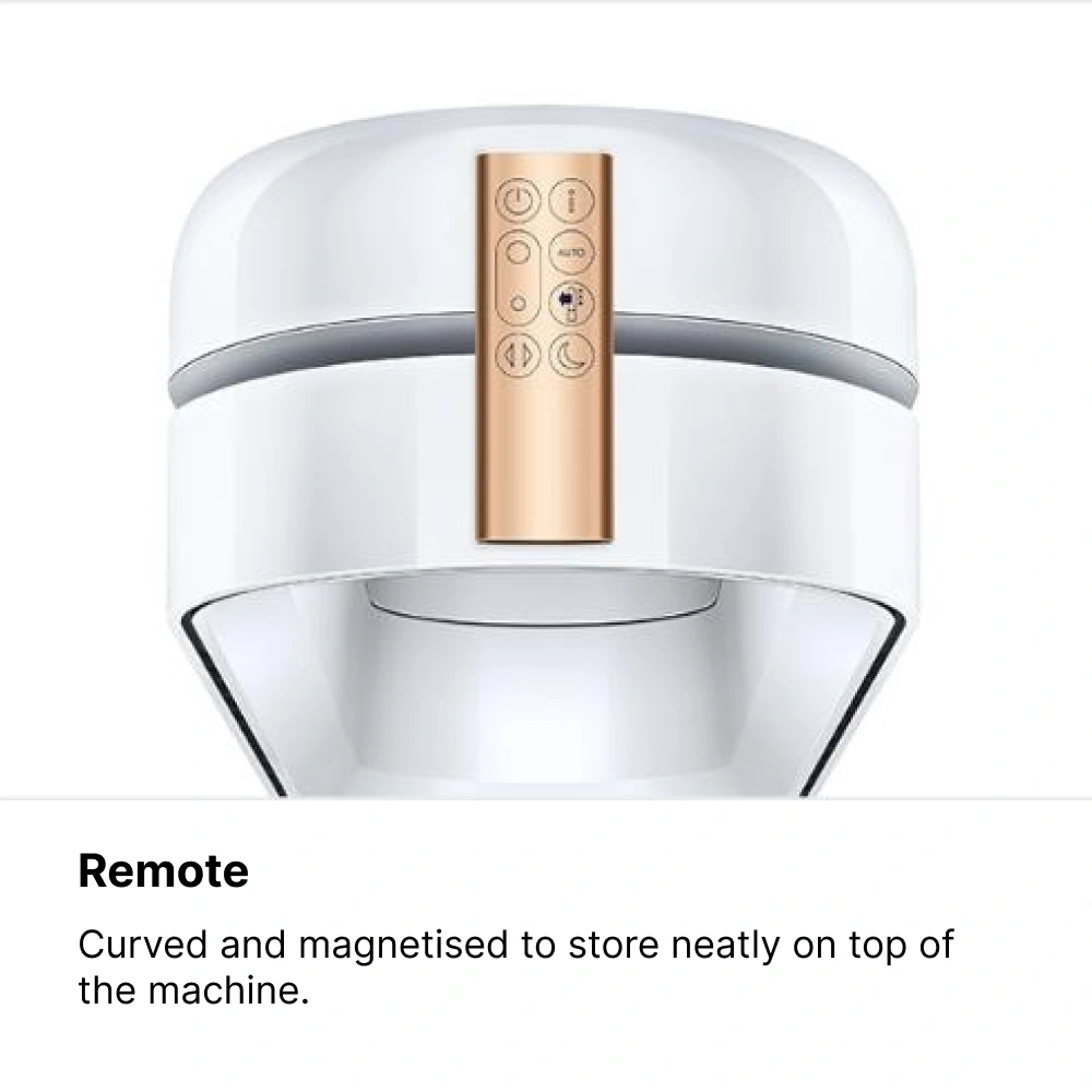 The Dyson TP09 Pro Purifier Cool Formaldehyde is a high-end air purifier and fan combo that not only captures pollutants but also destroys formaldehyde molecules using a catalytic filter. Equipped with a sealed HEPA filtration system and activated carbon, it captures 99.97% of ultrafine particles including allergens, dust, bacteria, and gases. The device delivers purified airflow across the entire room and can be controlled with precision via touch or button interface. Designed in an elegant white/gold finish, it offers energy-efficient performance (Class A+) and operates quietly with a noise level of 61.5 dB. Ideal for year-round air purification with added cooling during warmer months.