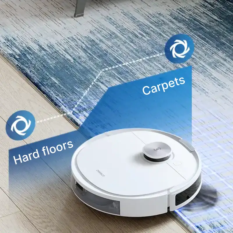 The robot identifies carpets and switches to higher suction levels automatically. With zone cleaning and virtual boundaries, you can prevent the robot from entering sensitive areas or schedule extra care for high-traffic rooms.