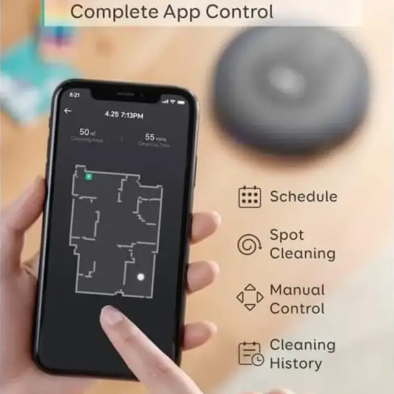 Compact and quiet robot vacuum with smart navigation, ideal for apartments. Offers reliable daily cleaning at a great price.