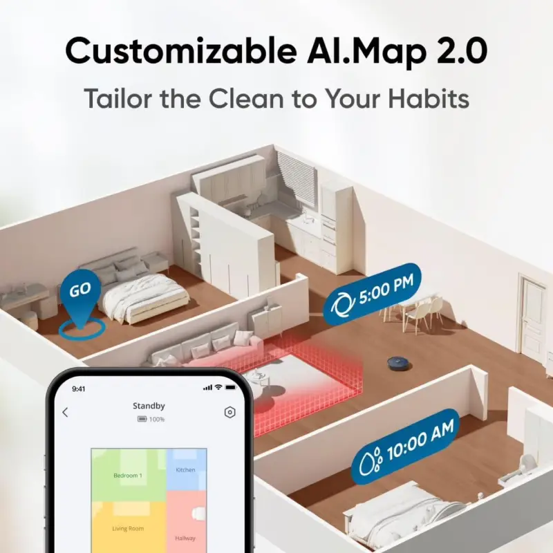 Its iPath™ Laser Navigation combined with 3D Structured Light Technology enables ultra-accurate mapping and real-time obstacle avoidance. It doesn’t bump into chair legs or get tangled in cords — the robot “sees” its environment and smoothly navigates around furniture and dynamic obstacles, even in low-light conditions.