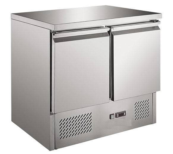 Gastroline S901 2 Door Refrigerated Prep Counter with Solid Steel Top.