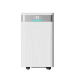 Compact and efficient dehumidifier for small to medium rooms up to 20 m². Features include automatic humidity control, ultra-silent 38 dB mode, 2 drainage options, 24h timer, and child lock. Ideal for bedrooms, bathrooms, and basements.