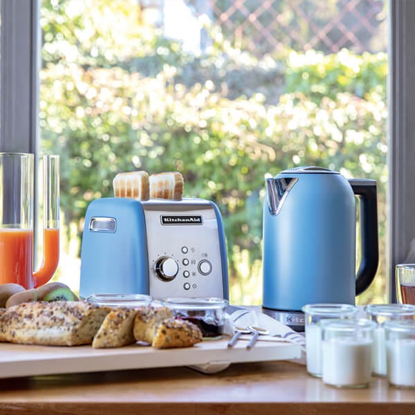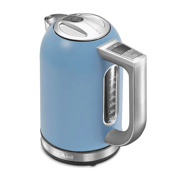 A 1.7 L KitchenAid kettle with 6 temperature settings and a digital display. The smart temperature sensor lets you check the water temperature even when the kettle is off its base, and Hold can maintain the selected temperature for up to 30 minutes when the kettle sits on its base.
