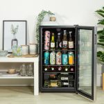 Three chrome wire shelves are fully removable to accommodate taller bottles like Chardonnay or Champagne, while the temperature range of 2–15°C ensures everything from sparkling wine to canned cocktails is served at the ideal temperature. A built-in LED light illuminates the interior, and the lockable door provides added security. The reversible door and adjustable feet offer flexible installation options.