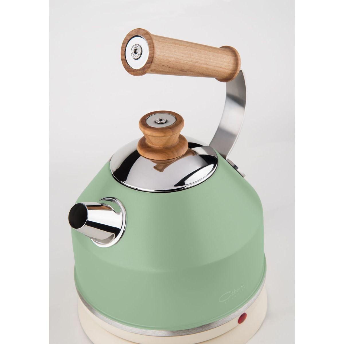 The Lignum Primavera (“spring” in Italian) is an exquisite electric kettle finished in a fresh, hand-painted pastel green. Its beech wood handle and lid knob are crafted by Italian artisans who have inherited their skills across generations, giving the kettle a tactile warmth and natural charm.