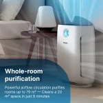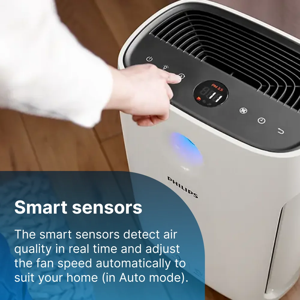 The Philips Domestic Appliances 2000i Series Air Purifier (AC2889/10) delivers high-performance air purification for rooms up to 79 m². With a Clean Air Delivery Rate (CADR) of 333 m³/h, it removes up to 99.9% of airborne impurities as small as 0.003 microns, including germs, allergens, and dust. The 3-layer filtration system includes a True HEPA filter and activated carbon filter. Smart sensors continuously monitor the air quality and automatically adjust speed levels. It also features ultra-quiet standby mode for night-time use and app control for remote access. Certified by ECARF for allergy protection and energy efficient, it’s a reliable solution for cleaner indoor air.