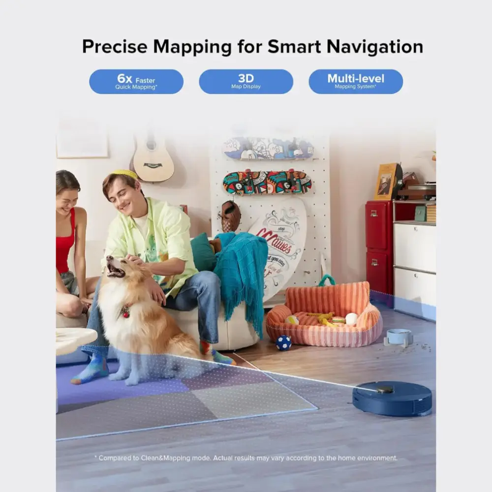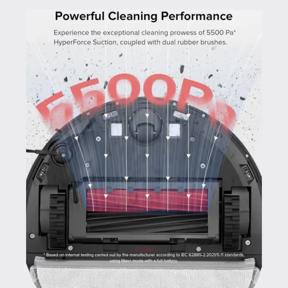 With an upgraded 5500Pa HyperForce™ suction, the Q5 Pro+ tackles everything from fine dust to cereal spills. It intelligently adjusts suction power based on the surface, optimizing energy efficiency and cleaning results:
