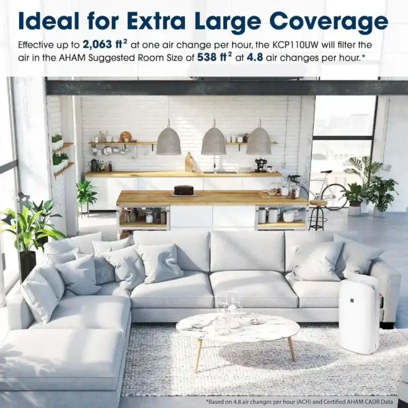 The Sharp KCP110UW combines advanced Plasmacluster Ion technology with True HEPA and activated carbon filtration to purify and humidify air in extra-large rooms. It circulates clean air through 538 ft² (≈50 m²) spaces at 4.8 air changes per hour, and supports remote control via the Sharp Air app and voice assistants like Alexa and Google. With auto modes, sleep mode, pollen and express clean functions, plus long filter life (up to 2 years), it delivers enhanced air quality with minimal maintenance and smart home connectivity.