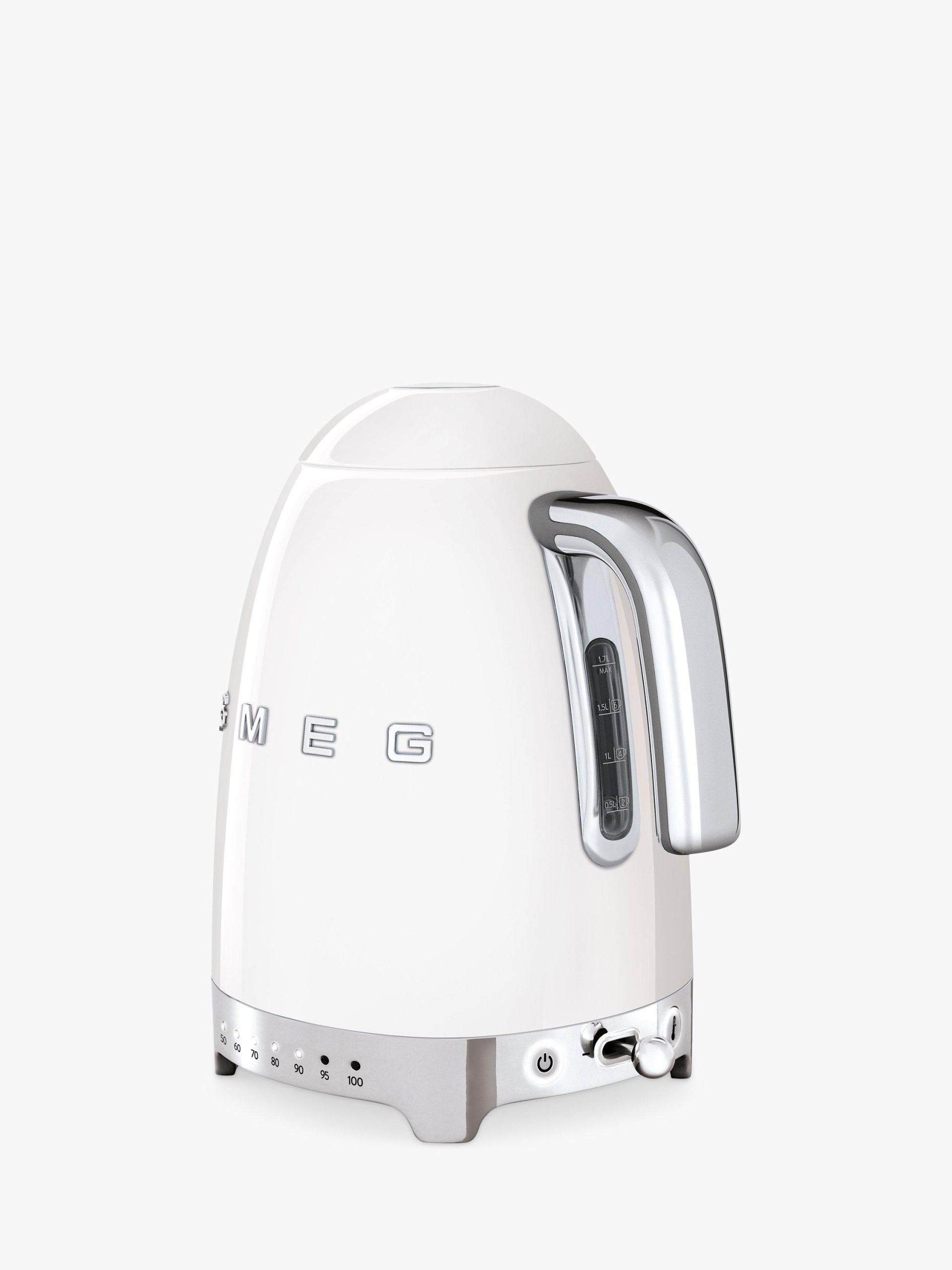 The KLF04WHEU is the natural upgrade choice for anyone who already owns or is drawn to the classic KLF03WHEU, but wants the added intelligence of temperature control. The design language is identical — the same SMEG silhouette, the same chrome accents, the same soft-opening lid and limescale filter — but with a taller base housing the LED display and temperature controls that transform everyday boiling into a precision craft.