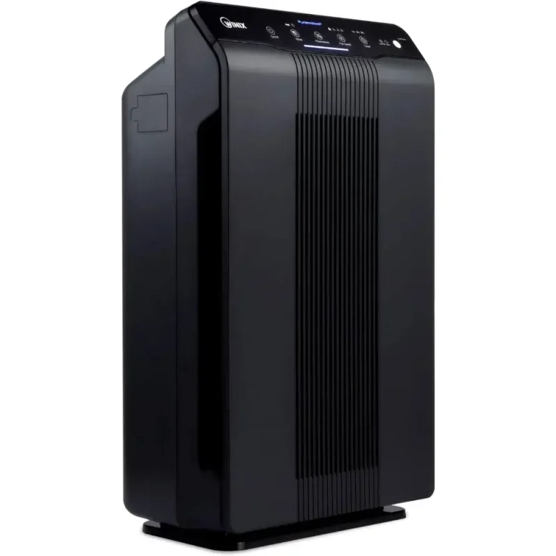 The Winix 5500‑2 is a powerful air purifier equipped with a four-stage filtration system: washable pre-filter, advanced odor-control carbon filter, True HEPA filter (captures 99.99% of particles ≥ 0.3 µm), and PlasmaWave ionizer. Independently AHAM-Verified, it delivers CADR values of 243 CFM (dust), 246 CFM (pollen), and 232 CFM (smoke), suitable for rooms up to 360 ft² (≈33 m²) with 4.8 air changes per hour It adjusts fan speed automatically based on air quality, features remote control, and includes Auto and Sleep modes. The unit operates quietly (38–59 dB depending on fan speed) and consumes up to ~53 W on high .